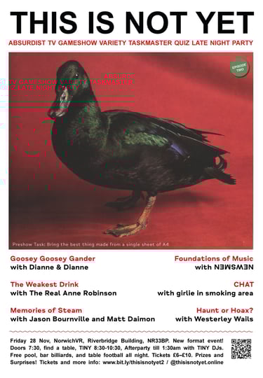 TINY launched in 2024 with a pilot episode. This event is a new format for TINY and Norwich, a night of interactive live tv gameshows, tasks, quizzes, happenings, lots of prizes and a party.